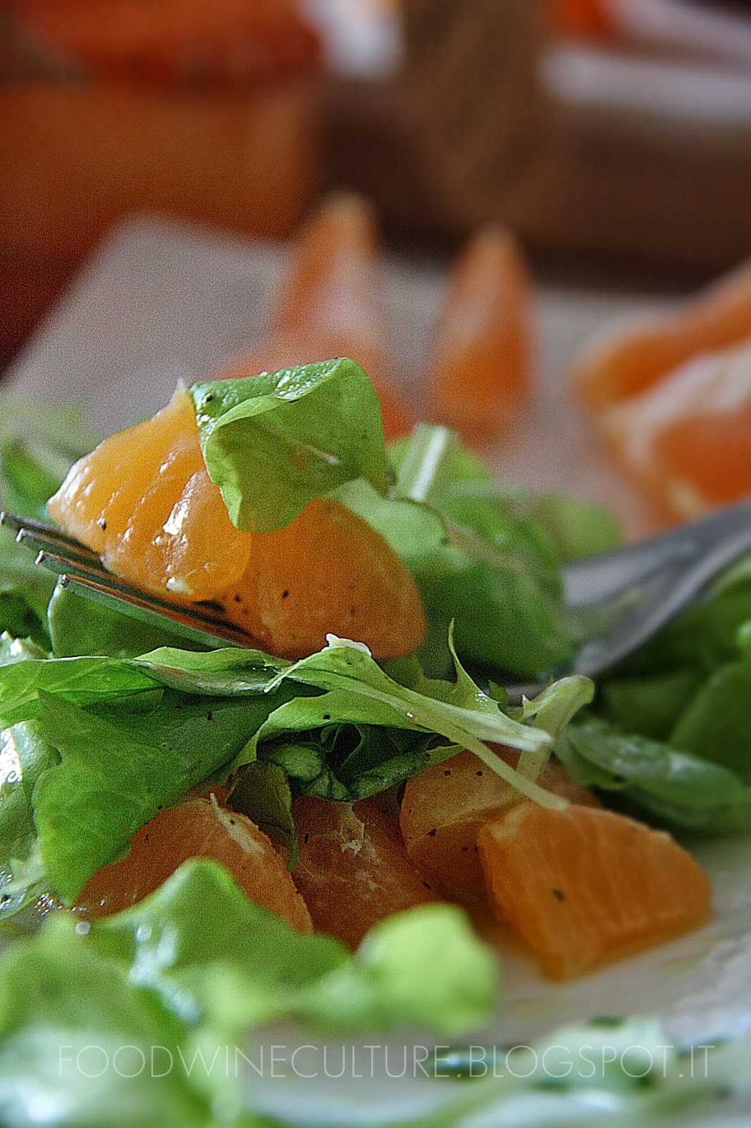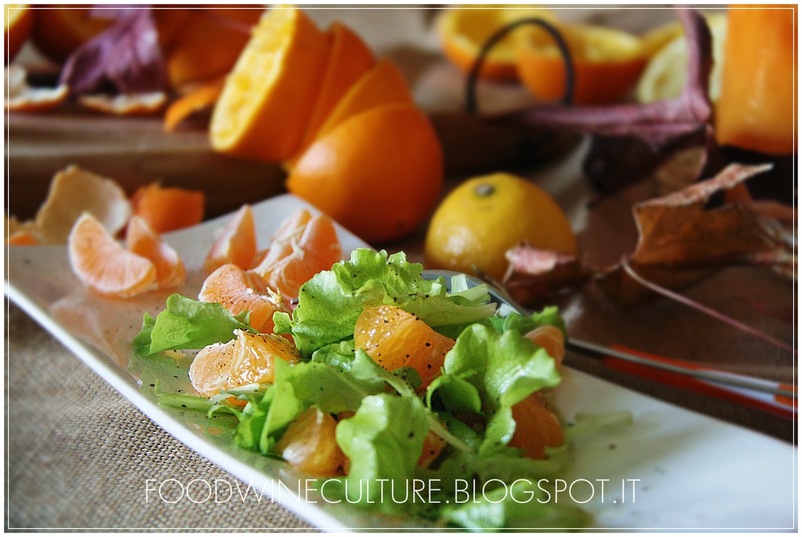Amalgamare bene il tutto con il succo di un’Arancia e di un Limone … meglio se quelli buoni, freschi e saporiti di Sicilia o delle zone del sud Italia dove il clima e piu’ mite c’e’ piu’ sole e la Frutta ha un sapore unico ! Aggiustare con Sale, abbondante Pepe Nero e Olio Extravergine di Oliva … se possibile preferire il Novello per il gusto aspro e pungente che lo caratterizza.
